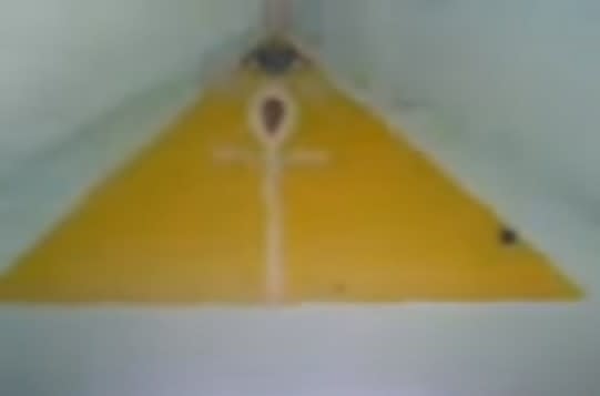 Esta es una de las primeras imágenes que existe del lugar, se observan columnas decoradas y algo que podría decirse es la imagen de un mundo, rodeado de una cadena.