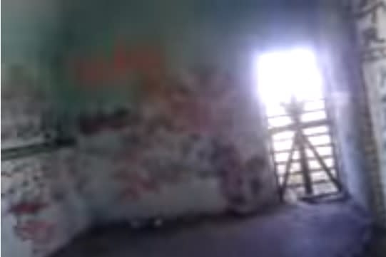En la parte superior de la habitación se puede apreciar un objeto colgando, o parte de un objeto que colgaba en el centro.