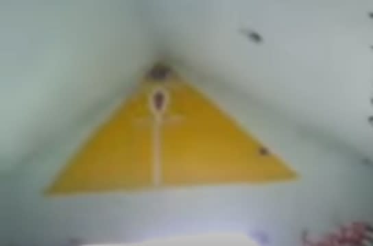 Esta dibujo muestra una pirámide y el ojo que todo lo ve en la punta superior.